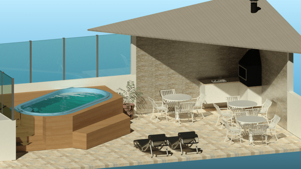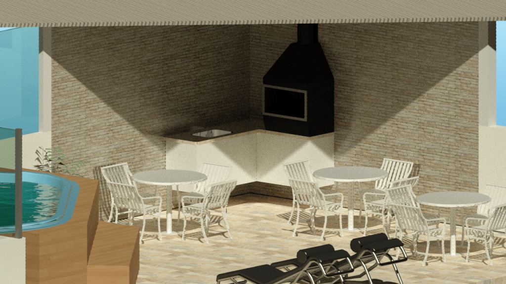 Projeto: Maria de Fátima Almeida. Imagens 3D para área de lazer de edifício residencial, feitas no software AutoCAD 3D. 2018.