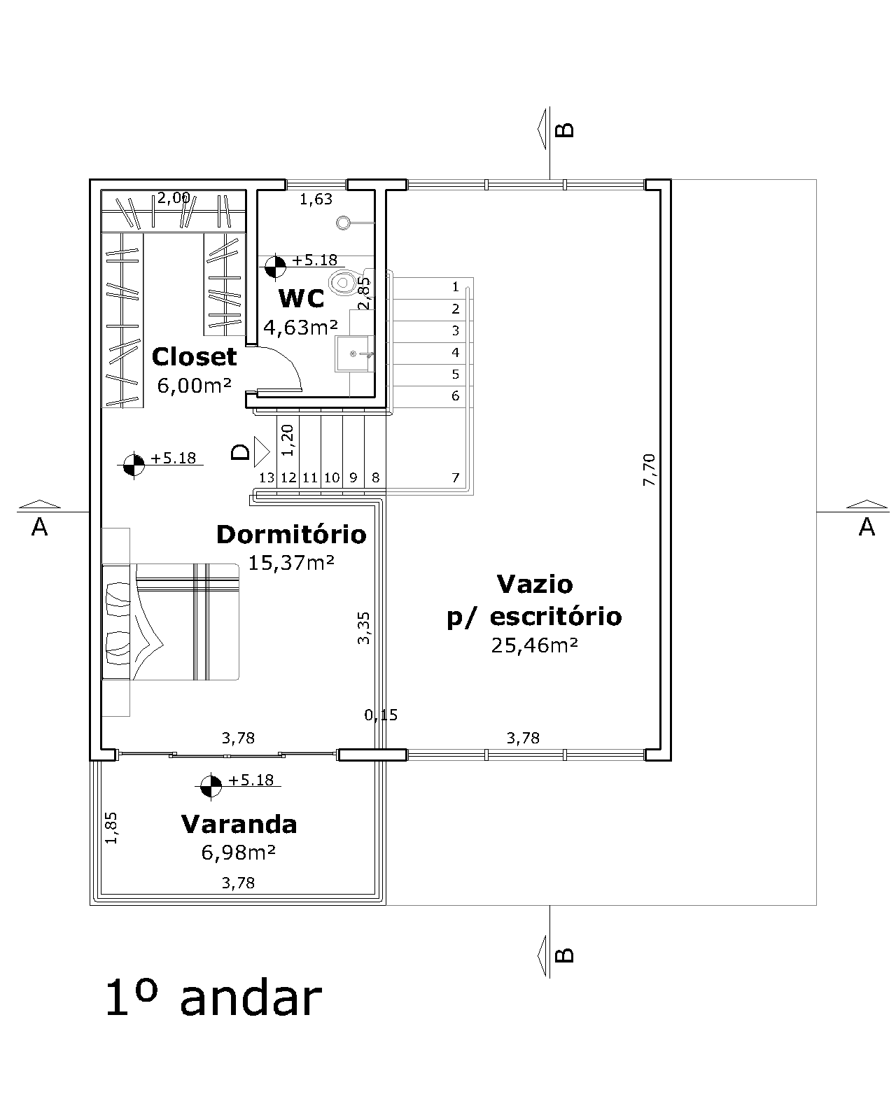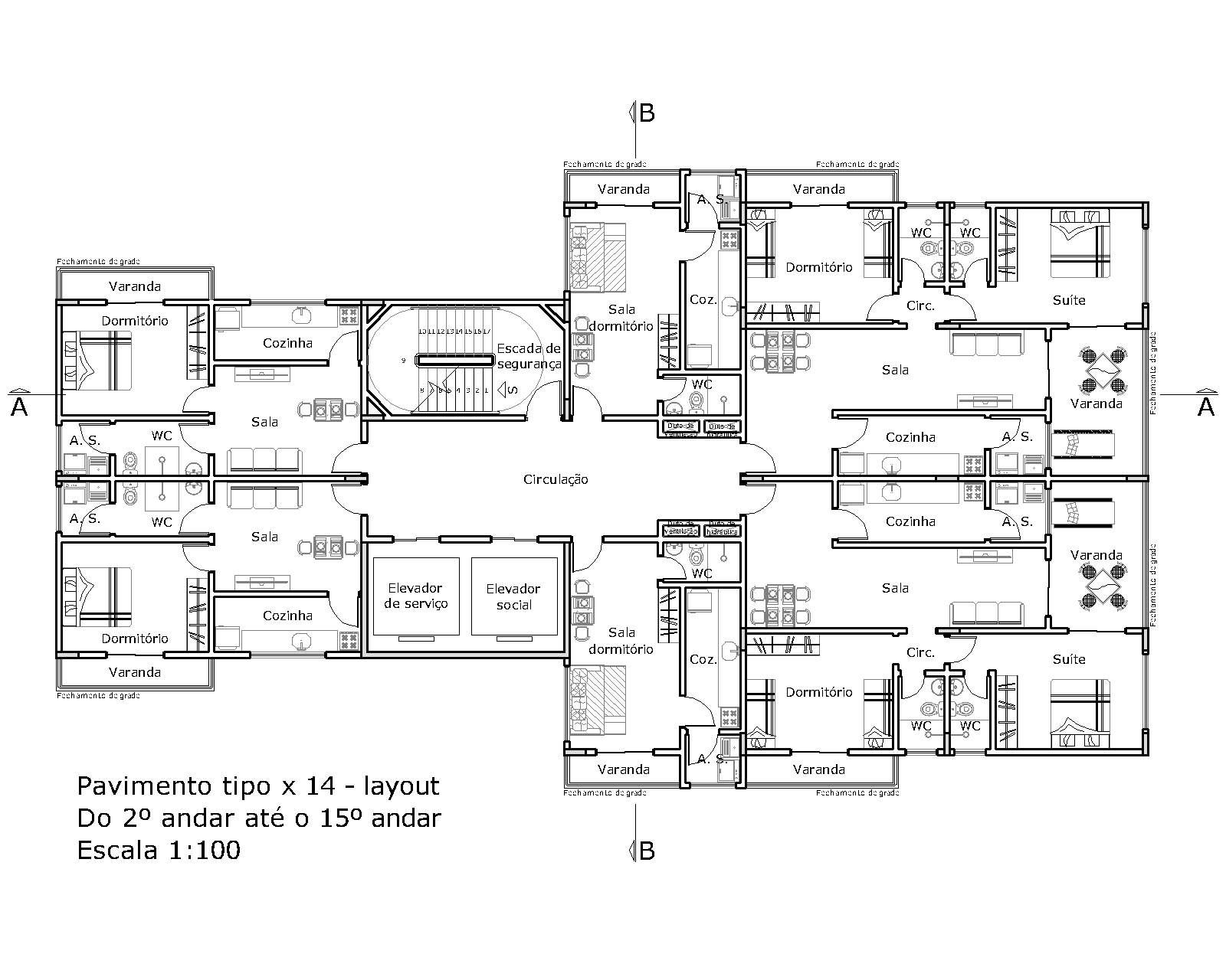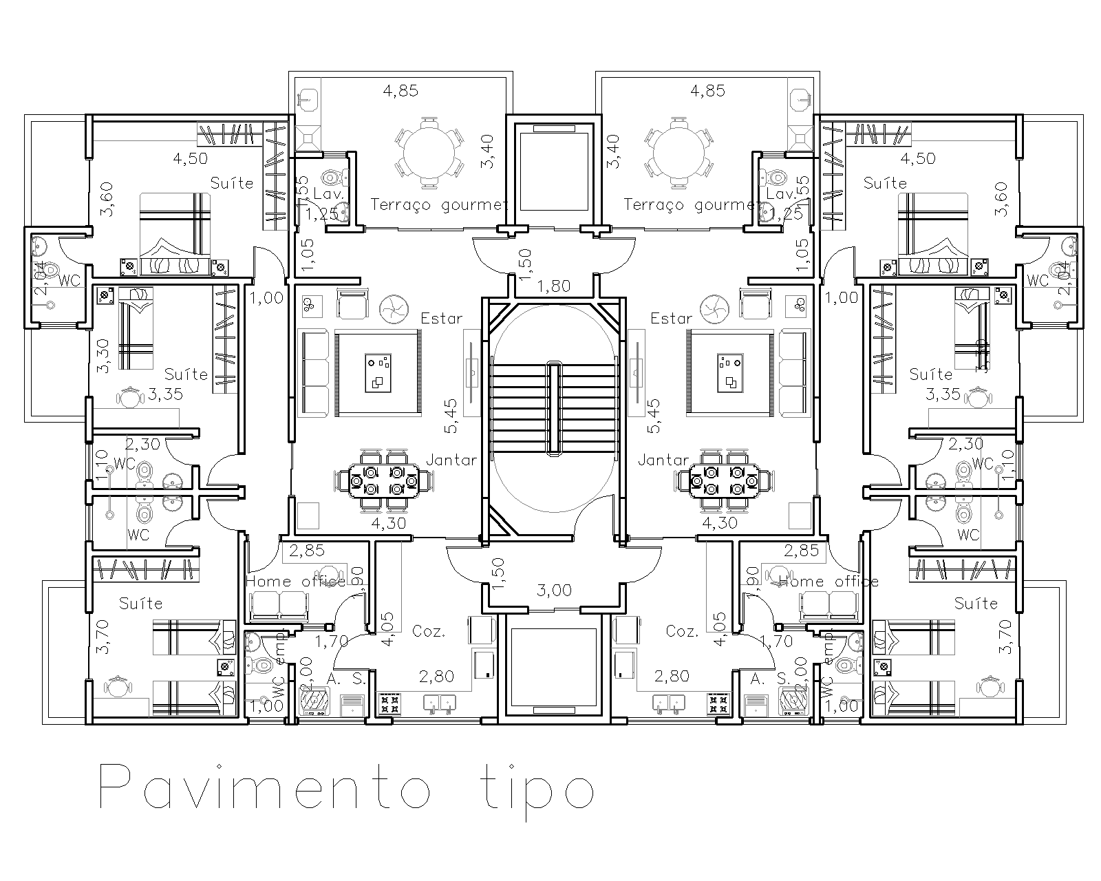 Layout do pavimento tipo. Trabalho acadêmico feito no software AutoCAD. 2011.