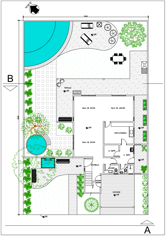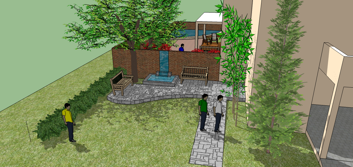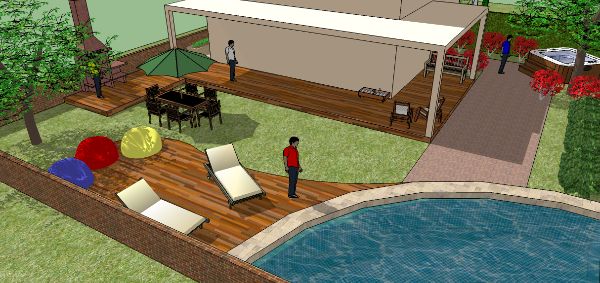 Layout de paisagismo. Trabalho acadêmico feito nos softwares AutoCAD e SketchUp. 2010.