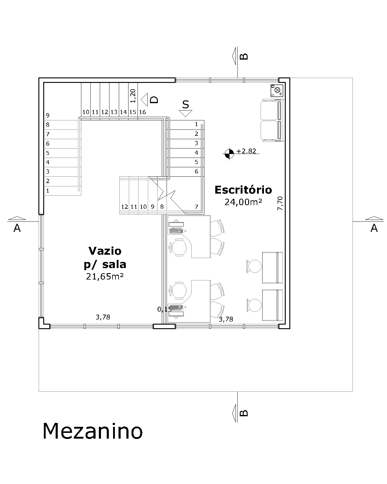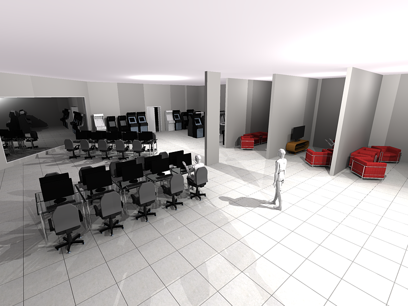 Projeto de gaming center para ensino e formação em desenvolvimento de jogos, feito no software AutoCAD (2D e 3D). 2012.