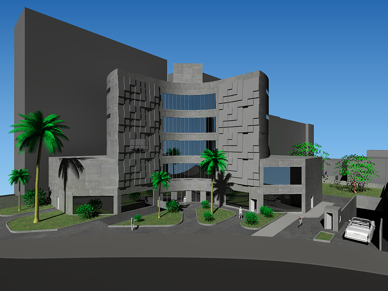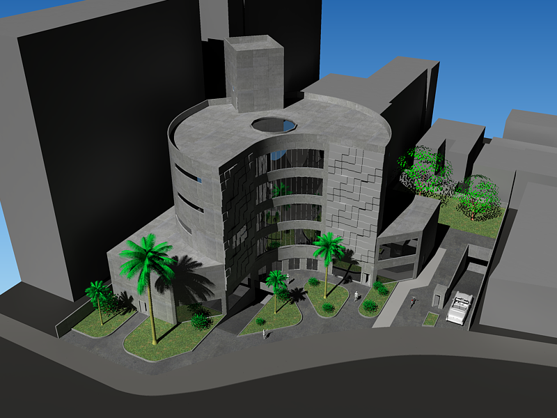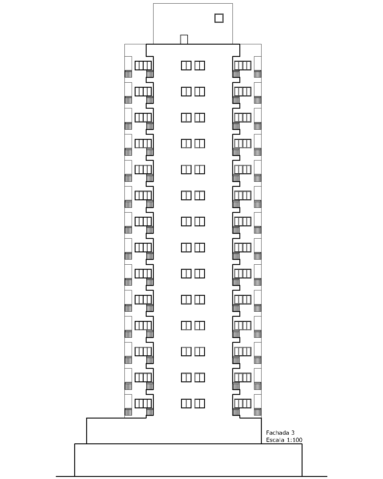 Layout do pavimento tipo e volumetria. Trabalho acadêmico feito no software AutoCAD (2D e 3D). 2010.